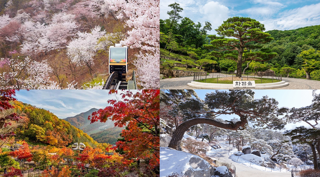 봄에는 철쭉, 진달래, 수선화, 벚꽃 등이 만발하며, 가을에는 단풍이 물들어 화려한 색감을 자랑합니다.