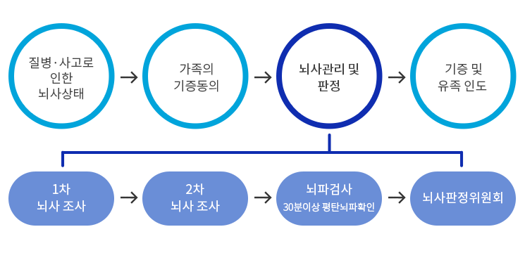 뇌사 판정 과정은 여러 단계로 이루어져 있습니다. 첫 번째로, 환자의 상태를 평가하기 위해 의사가 환자의 병력을 확인하고, 뇌의 기능을 검사합니다. 이 과정에서 뇌의 기능이 회복될 가능성이 없는지 확인하는 것이 중요합니다. 뇌사 판정은 두 번의 독립적인 뇌 기능 검사와 30분 이상의 관찰을 포함합니다. 이러한 절차는 뇌사 판정위원회에 의해 최종적으로 결정되며, 이 과정은 매우 엄격하게 진행됩니다.