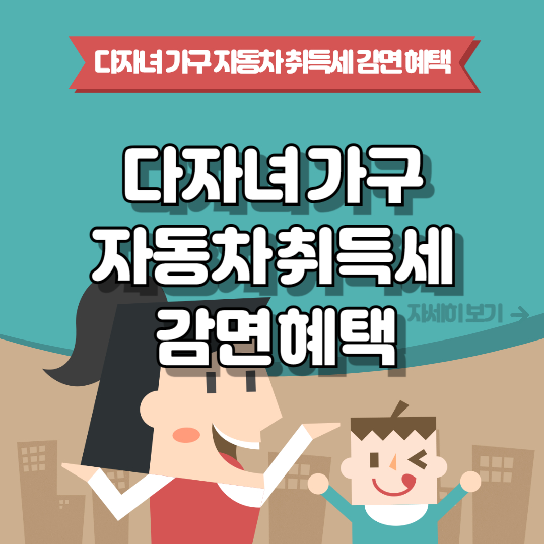 자동차 취득세 감면 혜택은 다자녀 가구가 차량을 구입할 때 취득세를 면제하거나 감면받을 수 있는 제도입니다.