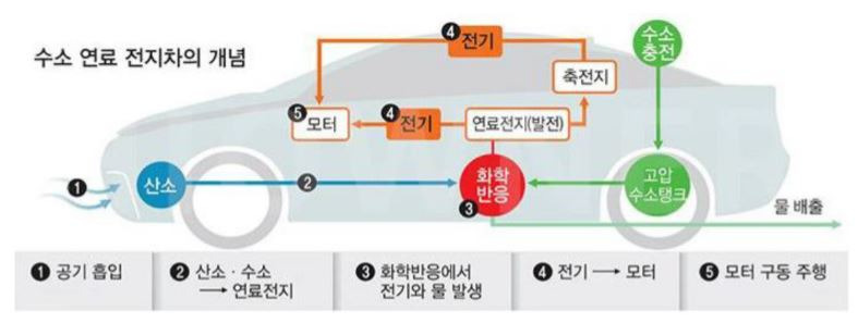 수소 수소전기차는 순수한 수소를 연료로 사용합니다.