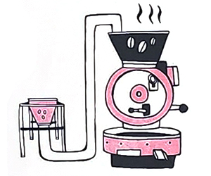 커피를 볶는다는 의미인 로스팅(Roasting)이란 수분이 함유된 생두(Green Bean)에 열을 가함으로써 열에 반응한 생두가 수분 증발과 할께 팽창되며 향미를 형성하는 과정을 말하며 이에 사용되는 기계를 로스터(Roaster)라 한다. 로스팅의 정도에따라 강도가 약할수록 산미가 강하고 강도가 강할수록 쓴맛이 강하게 된다.