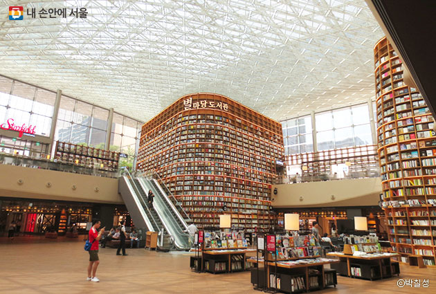 별마당 도서관은 스타필드 코엑스몰 내에 위치하고 있어요. 2017년에 개관하여 지금까지 많은 사람들이 찾는 명소가 되었답니다. 이곳은 책을 사랑하는 사람들에게는 천국 같은 공간이에요.