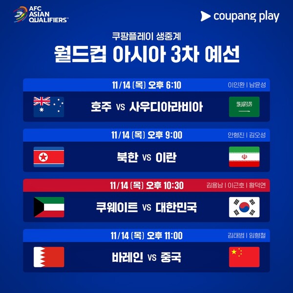 쿠팡플레이, ‘한국-쿠웨이트’ 월드컵 예선 단독 생중계