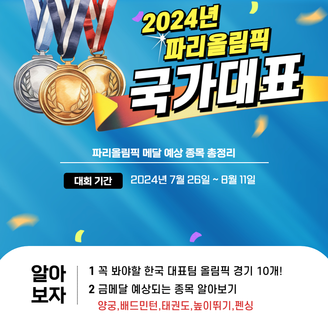 2024년 파리 올림픽에서 대한민국 선수들이 많은 메달을 획득하길 기대하며, 이번 블로그 글을 마칩니다.