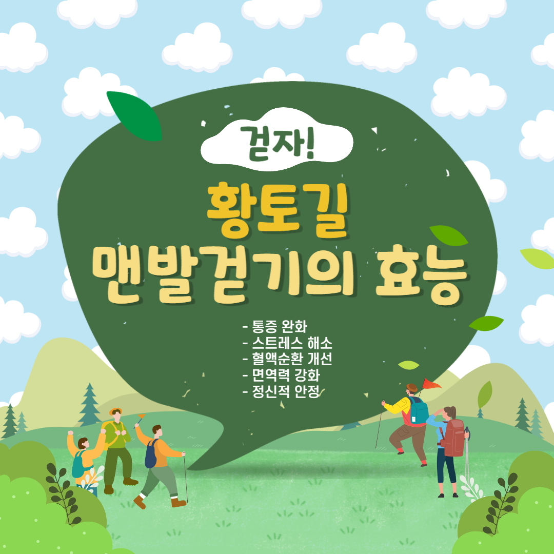 황토길 맨발걷기는 통증 완화, 스트레스 해소, 혈액순환 개선, 면역력 강화, 정신적 안정 등 다양한 건강상의 이점을 제공합니다.