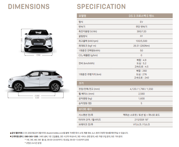 DS3 크로스백 E-텐스는 프랑스의 프리미엄 브랜드 DS의 전기차 모델입니다.